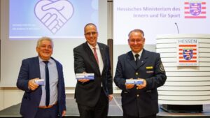 Im Rahmen der Ehrung stellte Innenminister Peter Beuth gemeinsam mit Michael Sauer, Geschäftsführer der Unfallkasse Hessen, sowie dem Vizepräsidenten des Landesfeuerwehrverbandes Hessen Norbert Fischer die neue „Ersthelferkarte“ vor, die Informationen für Ersthelferinnen und Ersthelfer über den Versicherungsschutz im Schadensfall bündelt. Bürgerinnen und Bürger, die in Hessen einer Person in Not Erste Hilfe leisten und dabei selbst zu Schaden kommen, sind über die Unfallkasse Hessen versichert. Von körperlichen Verletzungen über ein zerstörtes Handy bis hin zu psychischen Folgen – wer andere Menschen in einer Gefahrensituation vor Schäden bewahren will und dabei selbst zu Schaden kommt, ist abgesichert.