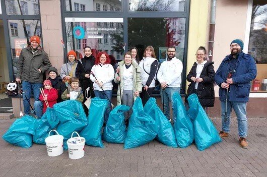 Die Teilnehmenden der Aktion „Uffräume“ vom 11. März 2023. (Foto: Quartiersmanagement Nordend)