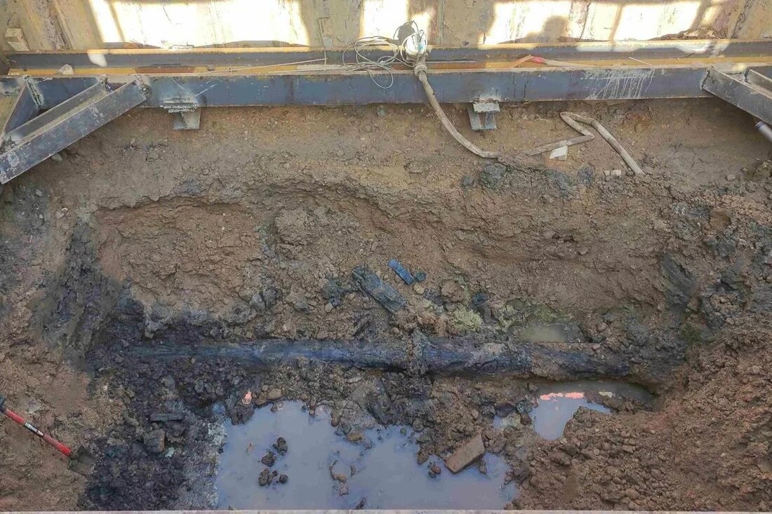 Altes, nicht verzeichnetes Abwasserrohr in Rumpenheim. (Foto: RP Darmstadt Kampfmittelräumsdienst)