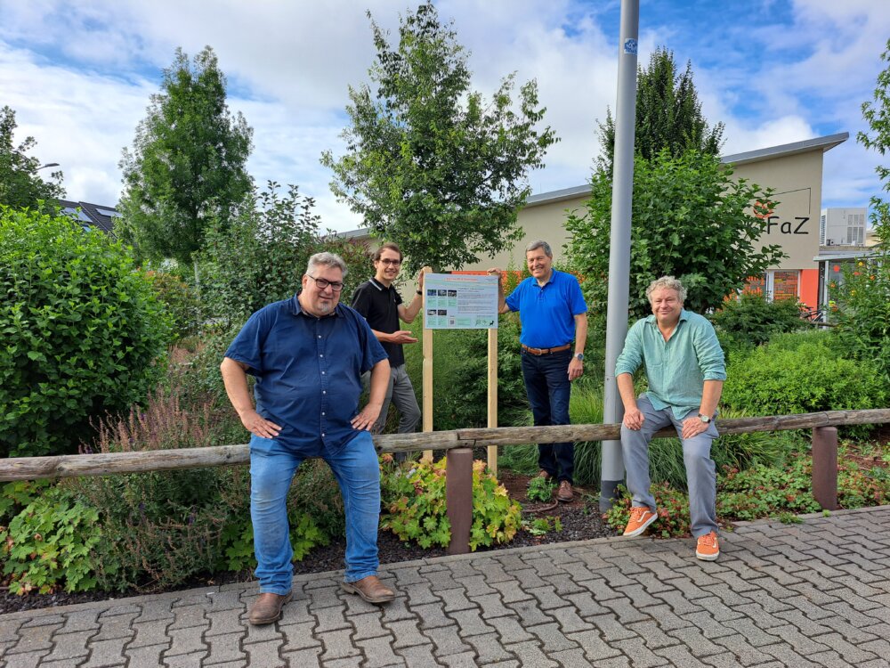 Die Stadt Griesheim hat unter dem Motto „Griesheim blüht auf – für Menschen und Umwelt!“ derzeit drei öffentliche Grünflächen als anschauliche Beispiele für standortgerechte Pflanzungen ausgewählt und nun vor Ort mit aufklärenden Informationstafeln bestückt. Die verwendeten Pflanzarten sind dabei von der „Griesheimer Pflanzenliste“ ausgewählt worden. Die beispielgebenden Pflanzungen auf den Flächen am Hallenbad, an der Rheinstraße sowie in der Gyönker Straße sollen Bürgerinnen und Bürger zu einer verstärkten ökologischen Gestaltung des eigenen Gartens mit den gezeigten Arten motivieren. Bürgermeister Geza Krebs-Wetzl hat sich am Donnerstag (11. Juli) von Mitarbeitern des städtischen Bauhofs und der Stadtverwaltung die Fläche am KiFaZ Rheinstraße zeigen lassen.