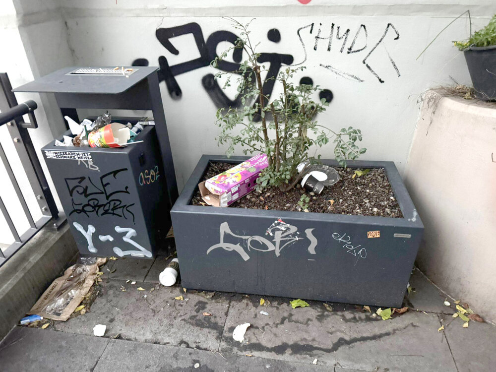 Leider kommt es in dem umgestalteten Bereich regelmäßig zu Vandalismus und Verschmutzungen, zum Beispiel durch das mutwillige Herausreißen der Pflanzen durch einzelne Personen. Die Stadt hat einen Blick darauf und beseitigt diese Schäden stetig. Allerdings entstehen hierfür Kosten, die Wiesbaden als Gemeinschaft trägt und die bei einem respektvollen Umgang mit dem gestalteten Bereich an anderer Stelle eingesetzt werden könnten.