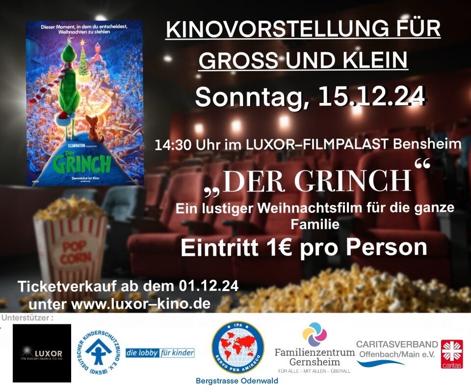 Start Bürgerreporter „Der Grinch“ im LUXOR-Kino Bensheim (IPA und Familienzentrum Gernsheim laden ein)