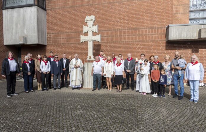 Los ging es in der St.-Thomas-Morus-Kirche mit dem stimmungsvollen Kerbhochamt, das von der Band LAETITIA, dem Kirchenchor und Mitgliedern der Bruderschaft des Heiligen und Wahren Kreuzes mitgestaltet wird. Der Kerbbetrieb startete dann vor der Kirche gegen 11.30 Uhr mit der Segnung des Kerbplatzes und des Kerbbaumes durch Pfarrer Norbert Hofmann. Um das Aufstellen des Kerbbaums hat sich der Kleingärtnerverein gekümmert. Weiter ging es dann im Pfarrsaal mit den Nodebabbscher, die die Gäste mit Guggenmusik. unterhielten.