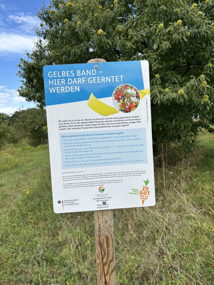 Mit dem Projekt „Gelbes Band“ setzt die Stadt Ober-Ramstadt ein starkes Zeichen gegen Lebensmittelverschwendung. Obstbäume und -sträucher, die mit einem gelben Band gekennzeichnet sind, dürfen von allen Bürgerinnen und Bürgern kostenfrei und für den Eigenbedarf geerntet werden.