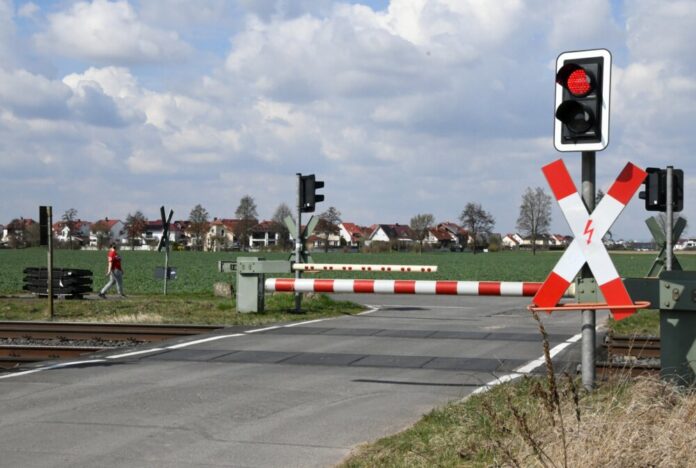 Rote Ampel für den Bau zweier Lärmschutzwände an der Bahnlinie Darmstadt-Aschaffenburg zwischen Münster und Altheim? Der HSGB hat jedenfalls das entsprechende Bürgerbegehren für zulässig erklärt, das nun in Münsters ersten Bürgerentscheid seiner Geschichte münden dürfte. Das Foto zeigt den Bahnübergang an der Straße „Außerhalb“, der Anliegern sowie Fußgängern und Radfahrern vorbehalten ist. Im Hintergrund ist das Münsterer „Inselviertel“ zu sehen. (Foto: jedö)
