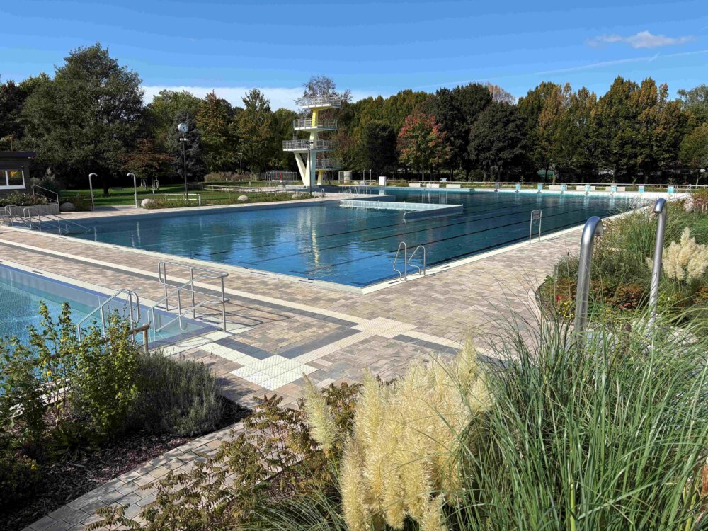Nach der Teilöffnung im Jahr 2024 stand das Freibad erstmals wieder in vollem Umfang zur Verfügung. So konnten die Besucherinnen und Besucher nicht nur die bereits bekannten Nichtschwimmer- und Kleinkinderbecken nutzen, sondern auch im 50-Meter-Sportbecken wieder ihre Bahnen ziehen. Auch der Sprungturm erfreute sich großer Beliebtheit – vom Ein-Meter-Brett bis zum Zehn-Meter-Turm. Die 10.000 Quadratmeter große Liegewiese bot Platz zum Sonnen und Entspannen, während sich die jüngsten Badegäste auf dem Spielplatz samt Piratenschiff austoben konnten. Als ein Highlight stellte sich das Kopffußfeld heraus, das zahlreiche Besucherinnen und Besucher für Ballspiele nutzten.