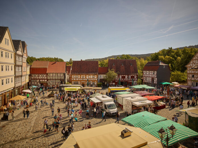 Auf dem Marktplatz des Museums findet an diesem Tag der beliebte Bauernmarkt statt. In historischer Umgebung können sich Museumsgäste dort mit allerlei Köstlichkeiten von hessischen Bauernhöfen eindecken. Das vielseitige Angebot reicht von Wurst, Käse, Honig, Brot und Kuchen bis hin zu Wildspezialitäten, Konfitüren und Gewürzen. Ergänzt wird es durch saisonales Obst und Gemüse sowie verschiedene Bio-Produkte. Diesmal zieht wieder der Duft der veganen Pilzpfanne der Edelpilzzucht Kroll über den Markt. Bei Familie Appel gibt es frischen Süßen und Apfelwein und der Feinkoststand Sabriev weckt mediterrane Erinnerungen.
