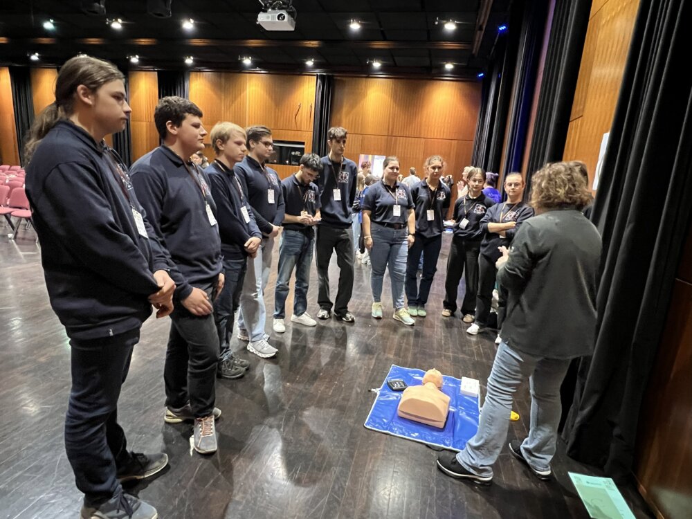 In den Pausen präsentierten sich Rettungsorganisationen wie ASB, DRK und Johanniter-Unfall-Hilfe mit Einsatzteams und einem Rettungswagen und gaben den Jugendlichen praxisnahe Einblicke in den Rettungsdienstalltag.