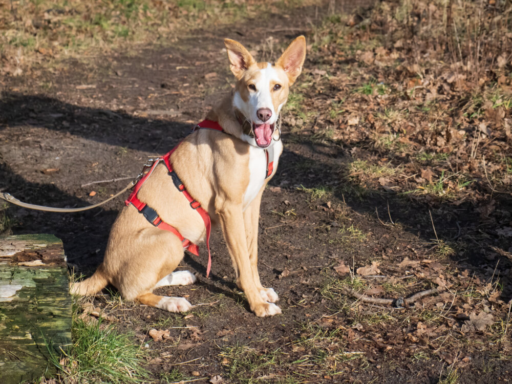 Lila (geboren im Dezember 2022), die zierliche Podenco-Hündin, ist lebhaft und hat sehr viel Energie. Sie springt und hüpft und ist voller Lebensfreude. Mit ihrem großen Vorwärtsdrang will sie permanent die Welt entdecken. Deshalb muss auch an ihrer Leinenführigkeit gearbeitet werden, denn der Zug ist durchaus recht stark. Jedoch zeigt sich schon jetzt, dass man sie mit Leckerlis sehr gut lenken kann. Also mit Konsequenz und fleißigem Training ist alles machbar!