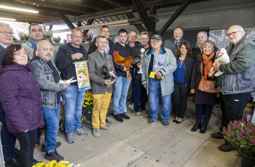 Nach der offiziellen Eröffnung durch Bürgermeister Manuel Friedrich war die Verteilung der zahlreichen Preise und Pokale für die erfolgreichen Züchter an der Reihe. Bewertet wurden rund 186 Tiere von 19 Züchtern in den Kategorien Tauben, Zwerghühner und Hühner. Erstmals war auch Wassergeflügel mit dabei. Den Titel eines Stadtmeisters holten sich Johanna Höfling beim Wassergeflügel, Werner Friedrich bei den Tauben, Dr. Wolfgang Bachmann bei den Zwerghühnern und Michael Scholl bei den Hühnern. Die Leistungspreise der Stadtschau auf die fünf besten Jung- oder Alttiere holten sich Michael Scholl, Johann Könecke, Dr. Wolfgang Bachmann, Paul Scholl und Andreas Epler. Ein Tier mit der Bewertung „Vorzüglich“ hatte Michael Scholl auf New Hampshire goldbraun, Angelo Vitterritti mit Italiener gelb, und Dr. Wolfgang Bachmann mit Zwerg-Niederrheiner birkenfarbig.