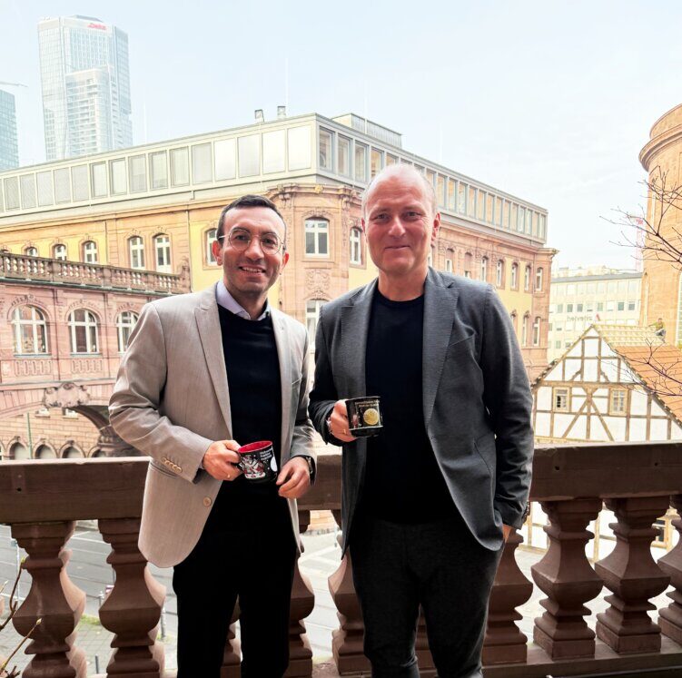 Anlässlich der WDC steht das Thema der diesjährigen Glühweintassen unter dem Motto „Stadt der Gestaltung“. Wie schon in den vergangenen Jahren gibt es auch diesmal zwei Varianten der Frankfurter Glühweintasse. Beide Tassen sind in glänzendem Schwarz gehalten und ganz dem Thema WDC gewidmet. Die klassische Glühweintasse präsentiert sich in Gold und Rot und zeigt in ihrer Mitte ein Emblem mit den Frankfurter Wahrzeichen. Die Motive der zweiten Tasse stammen von der Illustratorin Verena Mack und zeigen Momente des Miteinanders – ein Vorgeschmack auf das, was uns im WDC-Jahr erwartet: gemeinschaftliche Erlebnisse in fröhlicher Atmosphäre.