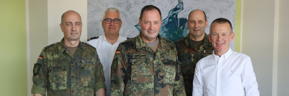 Radmann sprach sich für eine engere Zusammenarbeit zwischen ziviler und militärischer Seite aus, um die gesellschaftliche Resilienz zu stärken. Dafür seien gute Kommunikation, Vorsorgemaßnahmen in der Bevölkerung und an die örtlichen Gegebenheiten angepasste Maßnahmen entscheidend. Ein weiteres Thema des Gesprächs war die zunehmende Bedrohung durch Drohnen. Radmann verwies auf die bestehenden Unterschiede zwischen Polizei und Bundeswehr hinsichtlich der rechtlichen Zuständigkeiten: Es braucht klare, gemeinsame Vorgaben statt föderaler Kleinstaaterei. Zudem betonte der Kommandeur die Notwendigkeit, die Bundeswehr personell zu stärken: „Wir brauchen die Leute. Wir arbeiten bereits intensiv daran, nach einer politischen Entscheidung zur Umsetzung eines neuen Wehrdienstmodells die entsprechenden jungen Männer und ggf. jungen Frauen schnellstmöglichst aufzunehmen und militärisch auszubilden.”