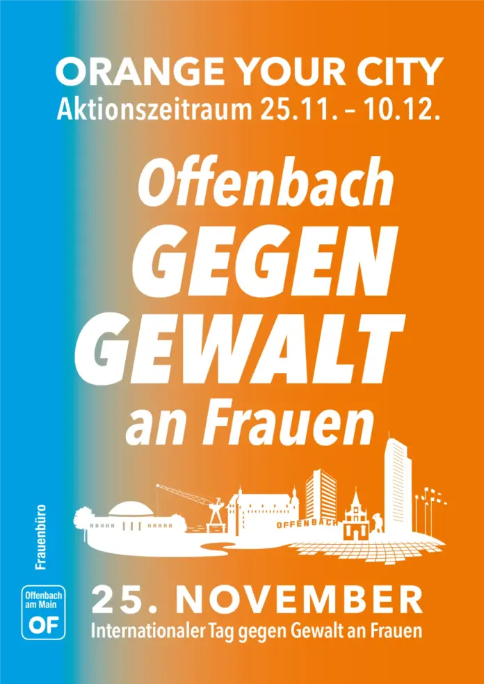 Die Orange Days haben sich haben sich in Offenbach als feste Aktionstage etabliert mit denen die Stadt jedes Jahr im November ein deutliches Nein zu Gewalt gegen Frauen zum Ausdruck bringt. „Die Orange Days sind ein wichtiges und kraftvolles Signal. Wir nehmen unsere Verantwortung ernst und arbeiten an dauerhaften Strukturen und einer langfristigen Strategie, um Frauen und Mädchen nachhaltig vor Gewalt zu schützen“, betont Luzia Rott, Fachreferentin für die Umsetzung der Istanbul-Konvention. Dazu gehören Maßnahmen zur Prävention und Unterstützung, wie sie im 2011 geschlossenen Übereinkommen des Europarats zur Verhütung und Bekämpfung von Gewalt gegen Frauen und häuslicher Gewalt, auch bekannt als Istanbul-Konvention, beschlossen wurde. „Jede Form der Gewalt ist eine Verletzung der Menschenrechte“, sagt Rott. „Und jeder Mensch, der hinsieht, nachfragt oder hilft, trägt zu einer strukturellen Veränderung bei.“ Schließlich sind die zahlreichen Fälle von Gewalt gegen Frauen keine Einzelfälle, sondern finde in allen gesellschaftlichen Schichten, zu allen Zeiten und in allen Altersgruppen statt. Mit den Orange Days soll daher nicht nur sensibilisiert, sondern auch Mut gemacht werden, sich einzumischen, Unterstützung anzubieten und Betroffene zu stärken.