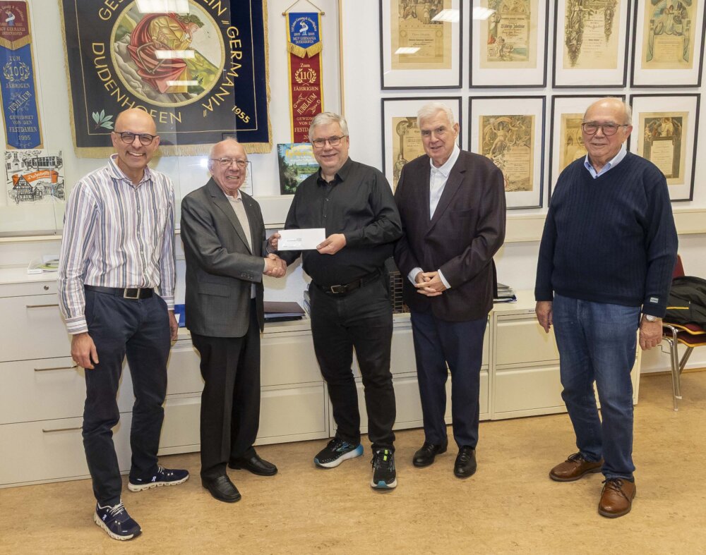 Der Förderverein für kulturelle Projekte Dudenhofen weiß, dass sich jeder Verein über eine finanzielle Unterstützung freut und so hatte der Vorsitzende des Fördervereins, Hans-Jürgen Lange, den Gesangverein AGV Volkschor Dudenhofen und den Musikverein Dudenhofen eingeladen und jeweils für beide einen Scheck über 2000 Euro dabei.