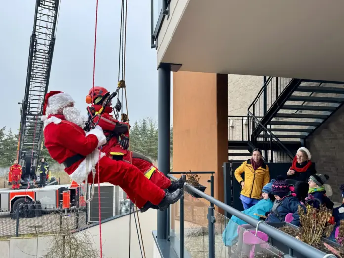 Auch in diesem Jahr sorgten die Höhenretter der Feuerwehr Wiesbaden für ein besonderes Highlight im Zwerg-Nase-Zentrum: Am Freitag, 5. Dezember, seilten sich die speziell ausgebildeten Einsatzkräfte im Gartenbereich des Zentrums von der Drehleiter ab – verkleidet als Nikolaus und seine tierischen Begleiter – und überraschten Bewohnerinnen und Bewohner – Kinder und junge Erwachsene – mit liebevoll gepackten Geschenken.