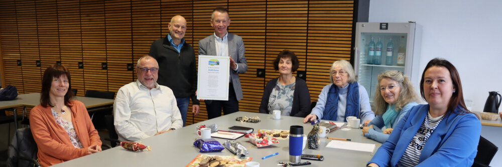 Der Kreis Groß-Gerau ist bei der weltweiten Kampagne Fairtrade-Towns dabei. Der Titel Fairtrade-Kreis wurde gerade um weitere zwei Jahre verlängert. Damit ist der Kreis bereits seit zehn Jahren Fairtrade-Kreis; im Jahr 2015 war er als erst zweiter Kreis in Hessen ausgezeichnet worden. Landrat Thomas Will übergab vor ein paar Tagen die aktuelle Urkunde mit Freude an den Fairtrade-Beauftragten des Kreises Stefan Leimbach.