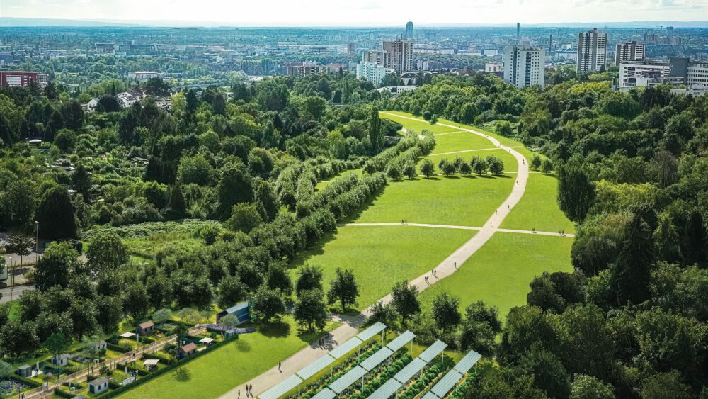 Im Frankfurter Nordwesten schafft die Stadt mit dem neuen „Stadtteil der Quartiere“ die Grundlage für dringend benötigten Wohnraum und Arbeitsplätze. Vorgesehen sind rund 6800 Wohnungen für etwa 17.000 Menschen, rund 5000 Arbeitsplätze sowie Schulen, Kitas und Sport- und Freizeiteinrichtungen. Die städtebauliche Entwicklungsmaßnahme sichert zudem westlich der A5 den regionalen Grünzug – durch eine gemeinsam mit der Landwirtschaft entwickelte koproduktive Landschaft. Mit der beschlossenen städtebaulichen Entwicklungssatzung wird das Verfahren zur qualitätsvollen Entwicklung des neuen Stadtteils gestartet. Die Planungsvariante Ost sieht eine kompakte Bebauung östlich der A5 vor, während westlich der Autobahn die Landschaft dauerhaft freigehalten und gemeinsam mit der Landwirtschaft weiterentwickelt wird.