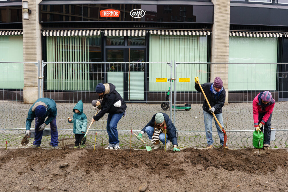 Zahlreiche Freiwillige waren gekommen, um einen Tiny Forest am Walther-von-Cronberg-Platz zu pflanzen. (Foto: Ben Kilb)
