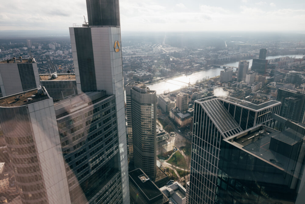 Ausblick auf dem FOUR Frankfurt auf den Turm der Commerzbank und die Stadt Frankfurt. Am 15.01.2026 wird im Hochhaus FOUR Frankfurt das Programm der World Design Capital 2026 (WDC2026) vorgestellt. (Foto: Ben Kuhlmann)