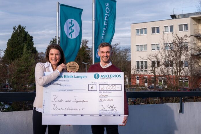 Große Freude auf der Kinder- und Jugendfarm Dreieichhörnchen e. V.: Die Asklepios Klinik Langen hat dem Verein eine Spende in Höhe von 2.000 Euro überreicht. Die Spende wurde von Klinikmanagerin Carina Kuffel an Eric Göbel, 2. Vorsitzender des Kinder- und Jugendfarm Dreieichhörnchen e. V., übergeben und kommt gezielt dem inklusiven Ferienangebot des Vereins zugute.