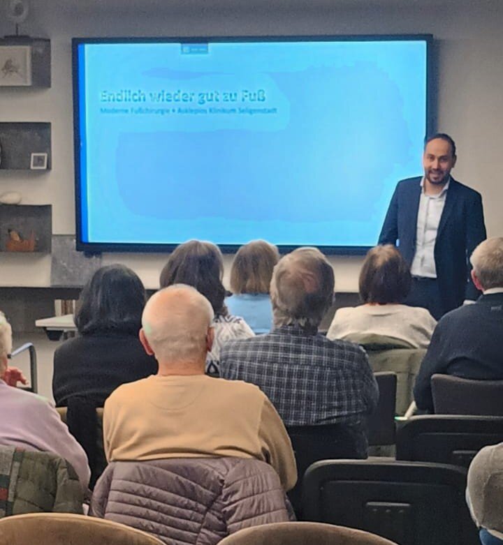 Kürzlich gab es im Hotel BalthazarS in Seligenstadt einen sehr interessanten Vortrag über innovative Fußchirurgie der Asklepios Klinik Seligenstadt, der bei den Teilnehmern auf eine äußerst positive Resonanz stieß. Der Vortrag konzentrierte sich auf eine klare und informative Darstellung der häufigsten Fußveränderungen, wobei moderne Therapiemöglichkeiten erörtert wurden.