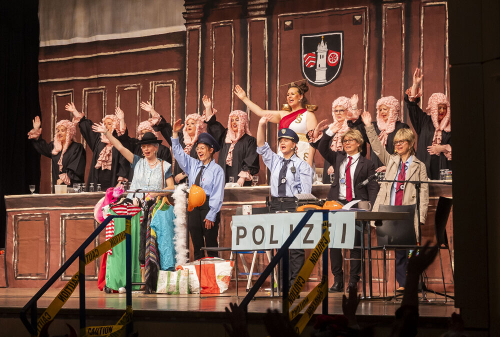 Nach dem Auftakt der Kreppelgarde – Vorsicht: Tatort! – folgte die erste Zeugenaussage: Patricia Wörner feierte ihre gelungene Premiere in der Bütt. Tänzerisch ging es weiter mit den Glücksbärchis, die in der „Police Academy“ ausgebildet wurden und bei einer Razzia ihr Können zeigten.