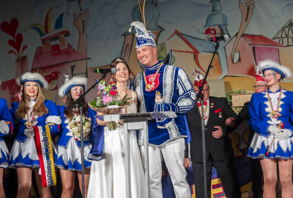 Besonders gespannt war das Publikum bei der ersten Sitzung auf die Antwort der entscheidenden Frage: Wer regiert die Krotzenburger Fastnacht? Das bis zuletzt streng gehütete Geheimnis sorgte für eine echte Überraschung. Mit Christoph III. und Prinzessin Romina I. hatte kaum jemand gerechnet. Der 39-jährige Christoph Kegler ist zwar begeisterter Fastnachter, genoss die Kampagne bislang aber eher vom Zuschauerrang. An seiner Seite steht Romina Rizzo (34), Lehrerin an der Joachim-Schumann-Schule, Tänzerin der Dance Company und engagiertes Vorstandsmitglied der Turnerschaft Klein-Krotzenburg (TKK).