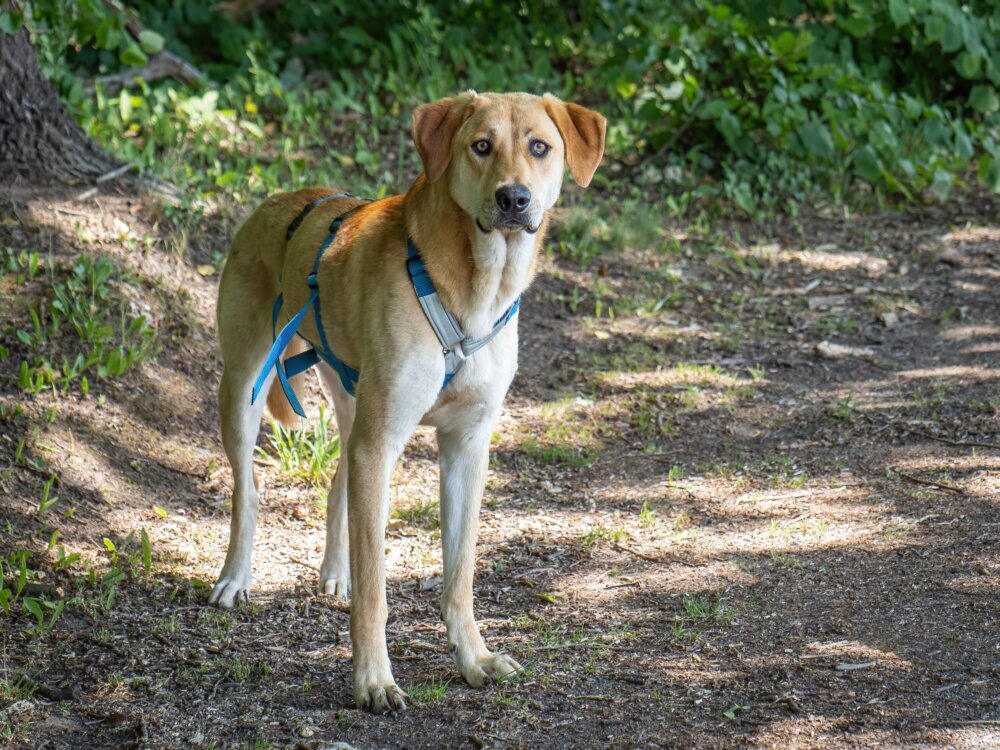 Chico (geboren November 2023), der große Rüde, läuft schon gut in der Gruppe mit und ist eher schüchtern und zurückhaltend. Er zieht nicht an der Leine und ist verträglich mit seinen Artgenossen.