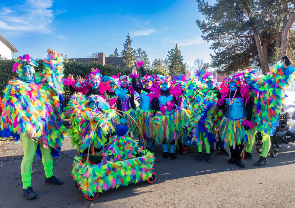 Mit dabei die Kinderprinzenpaaren aus Hainstadt, Klein-Krotzenburg, Froschhausen und der TGS Seligenstadt, reihten sich auch zahlreiche weitere Tollitäten ein. Auch mehrere Prinzenpaare – teils mit prächtigen Wagen – aus Mühlheim, Klein-Krotzenburg, Klein-Auheim und Hainstadt waren vertreten. Für einen besonderen närrischen Glanz sorgte zudem das Bundesäppelwoikönigspaar aus Steinheim. Dazwischen tummelten sich fantasievoll verkleidete Gruppen, Kindertagesstätten, Tanzgruppen und Vereine, die mit viel Herzblut und Kreativität für ein farbenfrohes Gesamtbild sorgten.