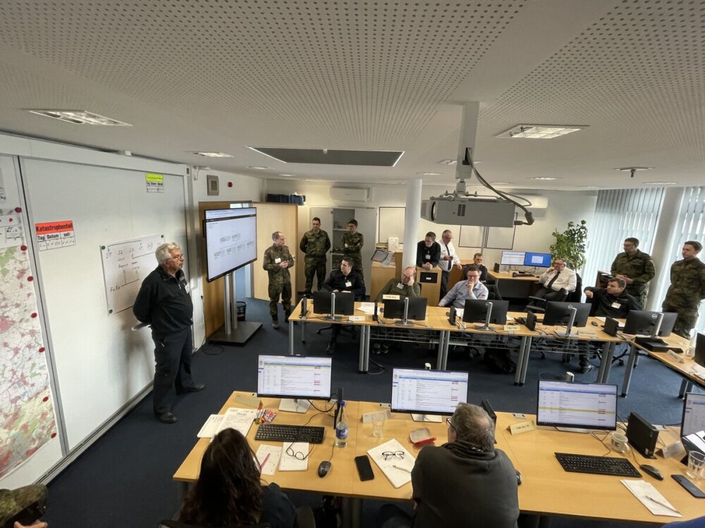 Bei der abschließenden Besprechung wurde die Bedeutung solcher Stabsübungen herausgestellt. Nur durch regelmäßige Zusammenkünfte der Vertreter der verschiedenen Institutionen und Organisationen können die Abläufe so eingeübt werden, dass sie auch bei einer akuten Großschadenslage reibungslos funktionieren.