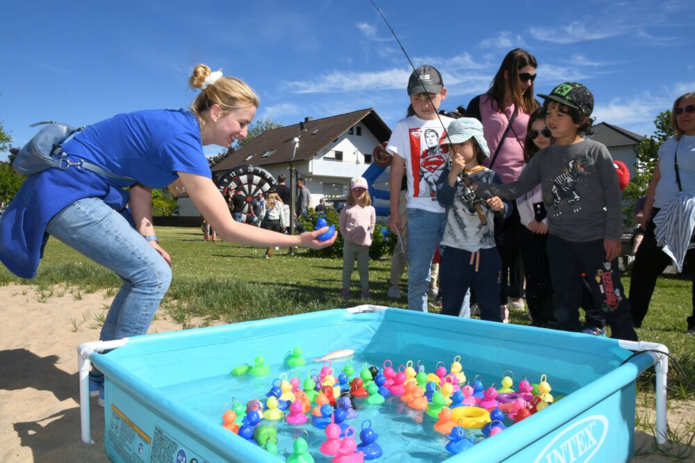 Auch der Angelsportverein betreibt in Münster Jugendarbeit und hat sich am Sonntag am ersten „Tag der Kinderrechte“ auf dem DJK-Gelände beteiligt. Hoch im Kurs: das Entenangeln. (Foto: jedö)