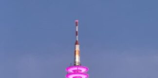 Frankfurter Europaturm leuchtet pink zum Weltmädchentag